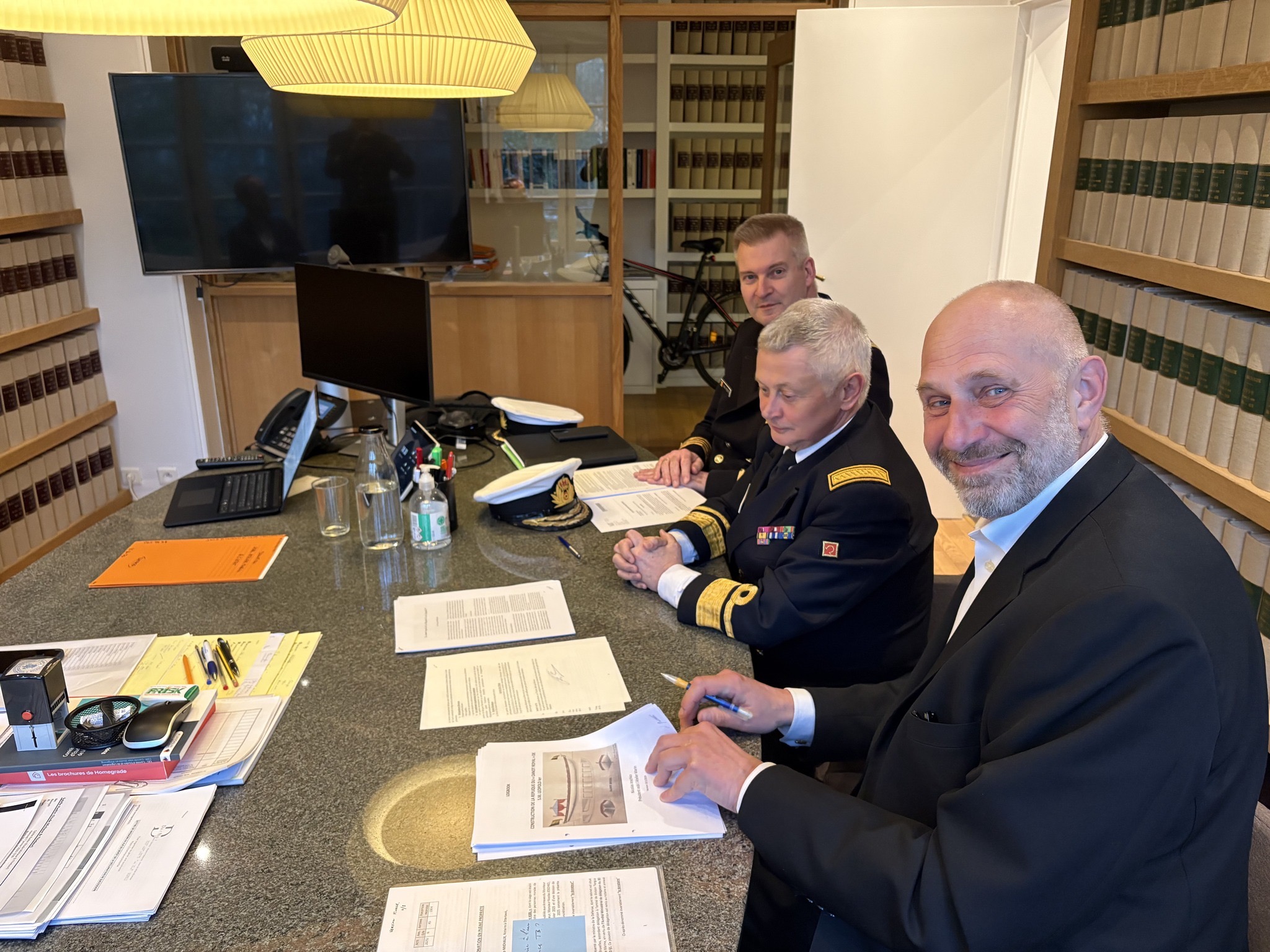 Nous avions le choix entre rentrer dans des procédures d'homologation très coûteuses (à nos frais !) ou trouver un nouvel havre pour le bateau - à l'étranger. C'est cette dernière option que nous avons choisi et avons pris la décision d'offrir le bateau à l'Association Tourville, qui construit le 'Jean Bart', un vaisseau similaire - à taille réelle (+/- 60m de long)- à Gravelines.